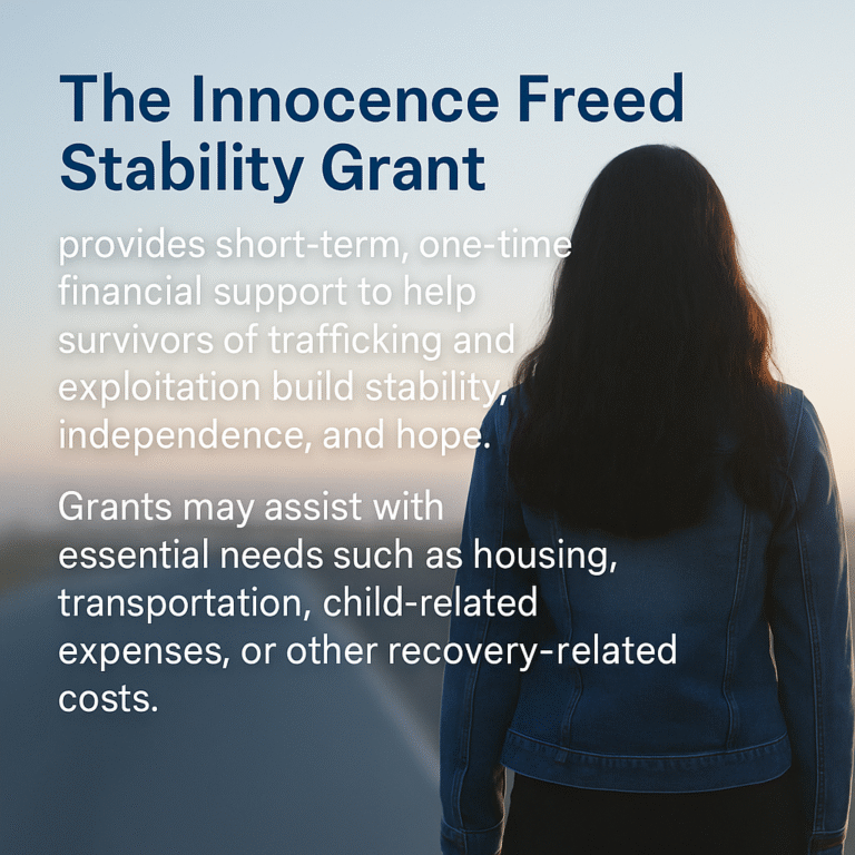 Practical Support for Survivors Rebuilding Their Lives The Innocence Freed Stability Grant provides short-term, one-time financial support to help survivors…